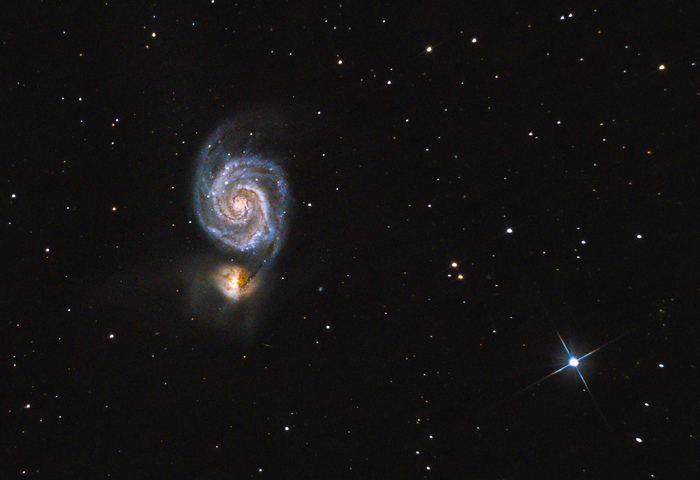 Так что окончательно победив юстировку я решил закрыть питерский астросезон глубокого космоса пересняв галактику водоворот. На мой скромный взгляд получилось гораздо лучше и по резкости и по детализации и по чистоте картинки.