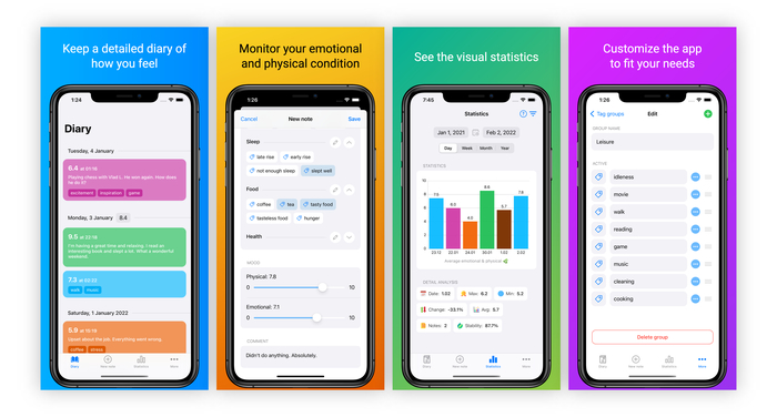 26 мая 2021 года я проснулся с желанием сделать свой трекер самочувствия. И не просто, а лучше того, что представлено на рынке. Идея была в том, чтобы предоставить пользователям возможность отслеживать эмоциональное и физическое самочувствие по шкале от 1 до 10, а также видеть статистику по среднему самочувствию.