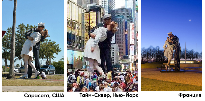 А в 2019 году, на копии статуи во Флориде было нанесено граффити #metoo – название общественного движения против сексуального насилия. Фотография, и соответственно скульптура, да и само событие, на тот момент уже сильно подвергалось критике со стороны активистов. Ведь мужчина и женщина, запечатленные на фотографиях Эйзенштадта и Йоргенсена, не знакомы.
