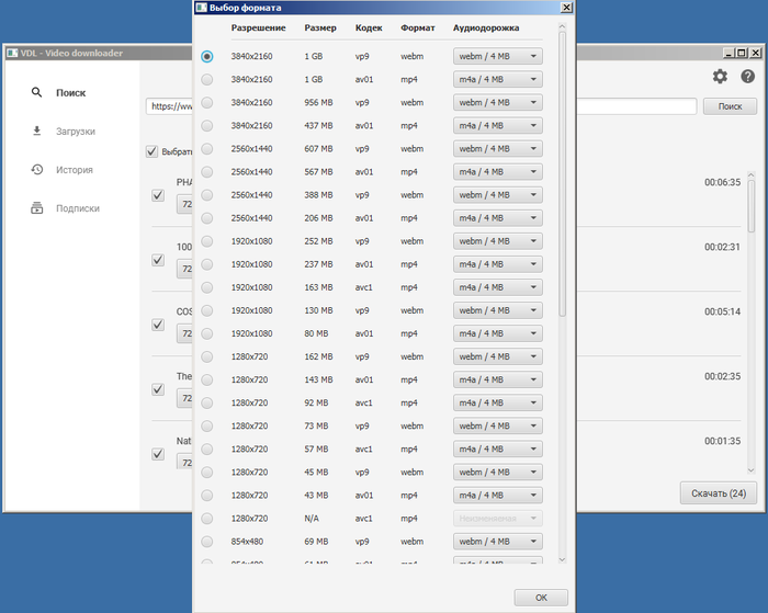 2. VDL теперь автоматически подставляет "правильную" дорожку. Для mp4 автоматом выбирается m4a, для webm, соответственно, webm. Если автоматический выбор вас не устраивает никто не запрещает дорожку сменить.