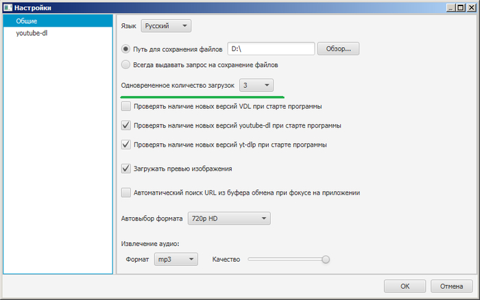 По умолчанию даже при включенной автозагрузке VDL сначала попытается вытащить данные о видео, прежде чем приступить к загрузке. Сделано это для того, чтобы при поиске плейлиста была возможность выбрать какие ролики скачать. Если эта опция включена, то поиск осуществляться не будет, а сразу начнется закачка, плейлисты в таком случае будут выкачиваться целиком.