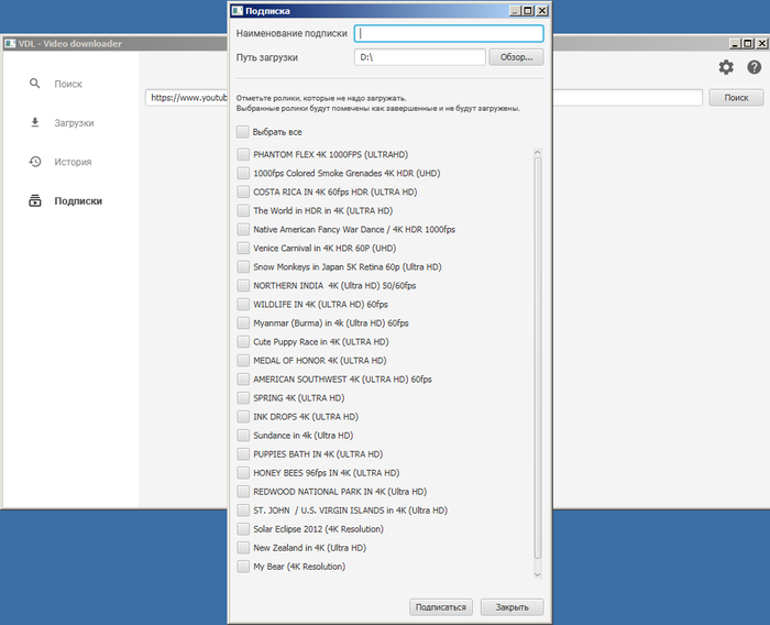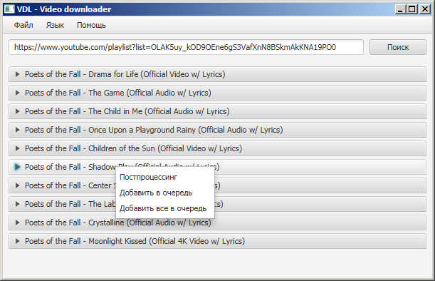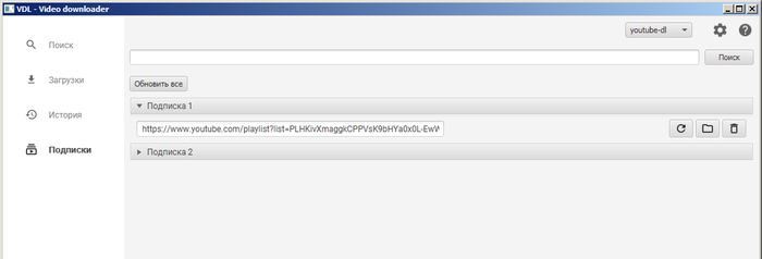 Ну и сразу предостережение: VDL пытается жадно вытянуть информацию по всем элементам плейлиста. Если плейлист огромный, то получение такой информации может занять вечность. Не пытайтесь скачать весь ютуб разом :) У меня есть мысль как подгружать ролики порциями, в будущих релизах попробую сделать, может получится.