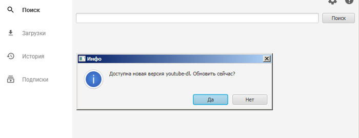 Пункт меню "Обновление" заменил на "Помощь", обновление затолкал в него и добавил пункт "О программе", который показывает текущую версию VDL и youtube-dl.