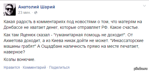 326 schizoeidos Взято с фейсбука Анатолия) продолжение темы с http://pikabu.ru/story/_2805448 11 лет назад Шарий Донбасс Новороссия Украина