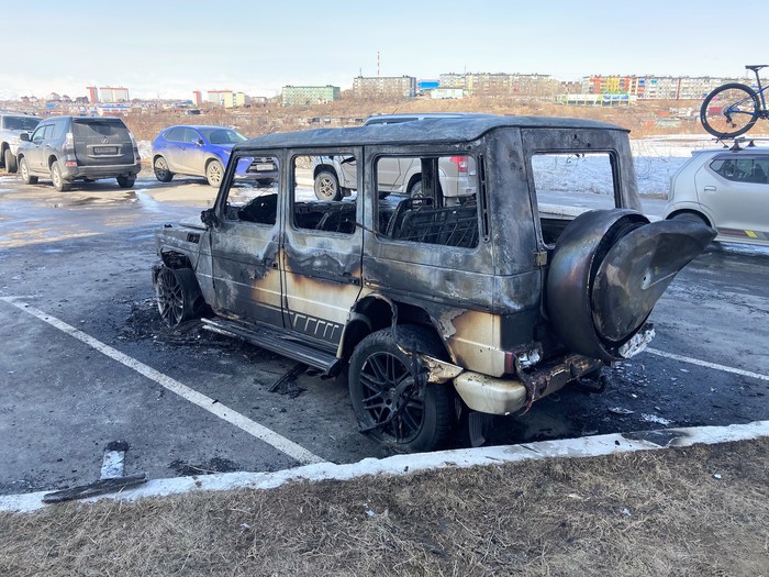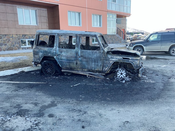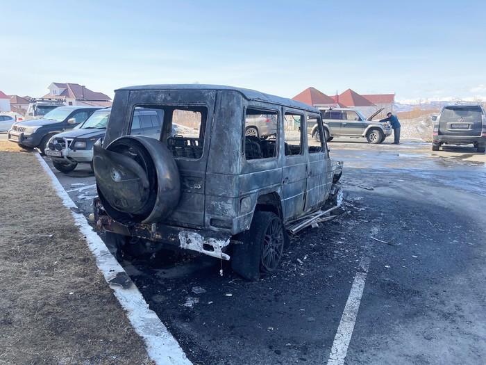В сети нет инфы за что, бытовуха или бабло. Наши люди в магазин на геликах не ездят. Понаехали утром подельники пострадавшего с номерами краевой администрации и заксобрания. В коментах инсты писали сильно сралась с ним соседка из-за парковочного места за день до поджога. Ни сколько не жаль, в администрации одно ворьё и п...рьё.