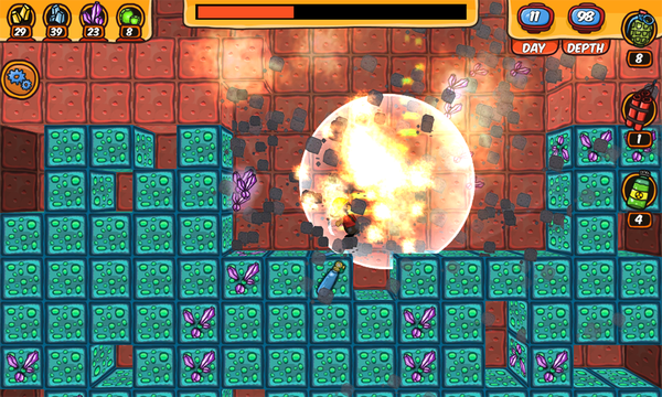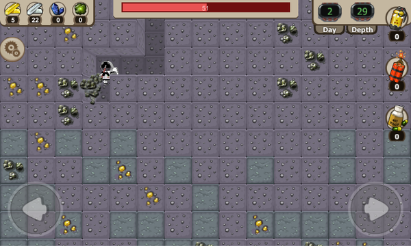 Да кстати я решил заменить идею с луной на другую, а именно теперь сюжет стал таков, что некий дедушка Пекос решил открыть тайну своему внуку перед смертью и всучил карту на которой отмечено место схоронения сокровищ. Внук же вспоминает кто из друзей может ему помочь и вспоминает про Безумного Копателя, в роли которого и предстоит играть. На каждый "раунд" даётся определенный запас воздуха, после которого вылазиет панель улучшения и покупок разного товара.