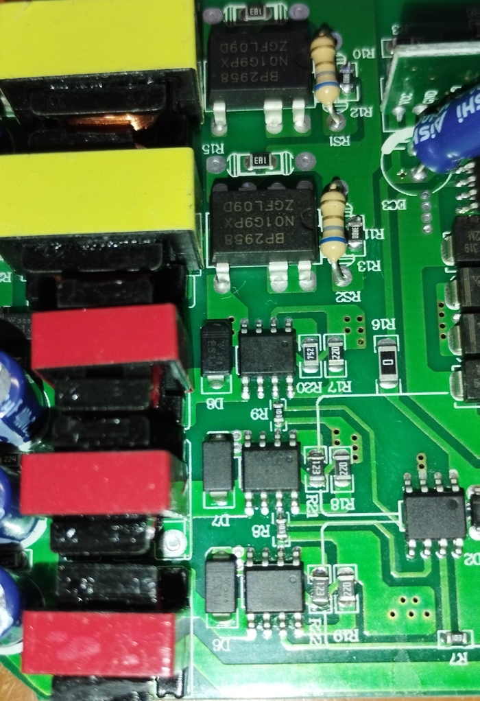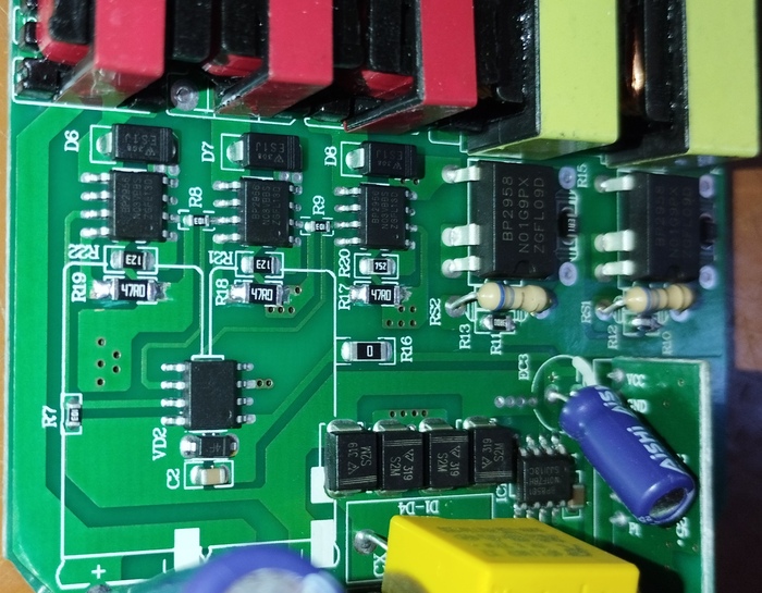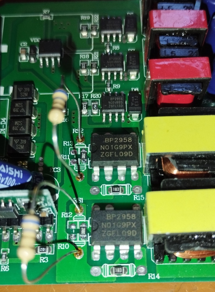 За кадром ищем даташит на 3 ШИМа по RGB линиям и проверяем соответствие для полного убеждения. Стоят bp2956 souc-8. Меняем резисторы 22 Ом на 47 Ом. Т.к. тоже не хочется мороки в будущем и RGB пользуемся по вечерам как ночник и тоже давно хотелось убавить яркость
