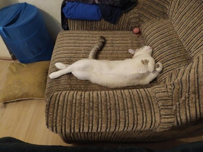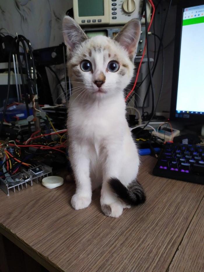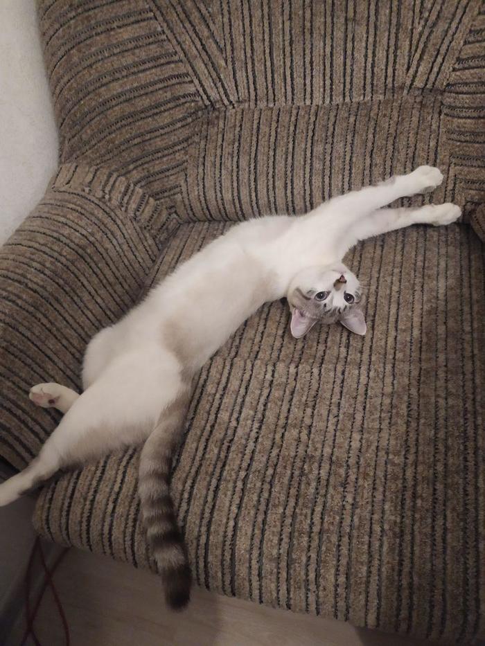 Деревенщина. Назвали Тошей. Любит устраивать ночной тыгыдым с раскидыванием наполнителя из лотка, и лазаньем по дверным косякам. В первые 10 минут, как принесли, застрял за холодильником в позе "звезда". Панически боится розового совка для туалета (он ворует какахи!), и покидает периметр при звуке брызгалки с водой, до того, как брызги коснутся его нежной шёрстки.