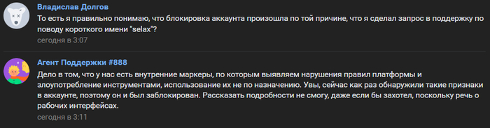 Ну и получил блокировку ещё и в поддержке на несколько часов. xD