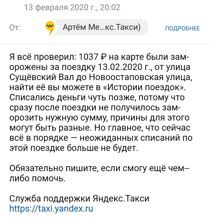Тут же пишу письмо, что кто-то использовал данные моей карты для оплаты, т.к я не совершал эту поездку. На данный момент последний ответ поддержки такой