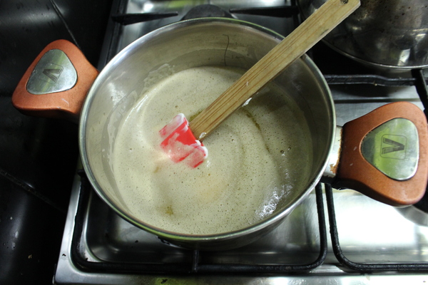 Когда почти все масло растает, а пиво приятно запарИт, снимаем с огня(данной температуры хватит, чтобы растопилось оставшееся масло и жидкость подостыла