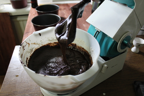 Тщательно перемешиваем. АККУРАТНО. Какао очень пылит. Первые движения совершайте плавно, чтобы потом не отмывать всю кухню от какао.
