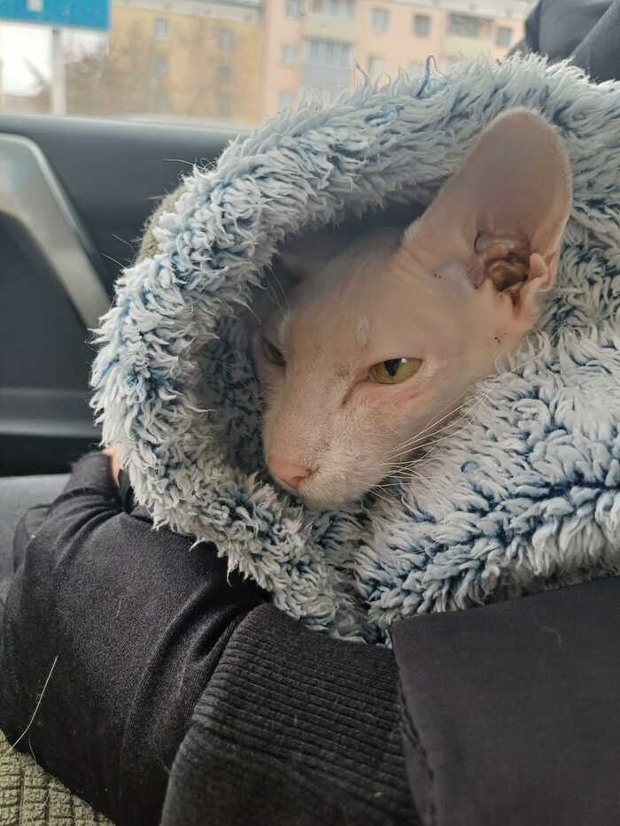 Но на улице холод. А сфинкс в мешках не способны жить...Поехали за кошью. А это оказалась именно кошка.