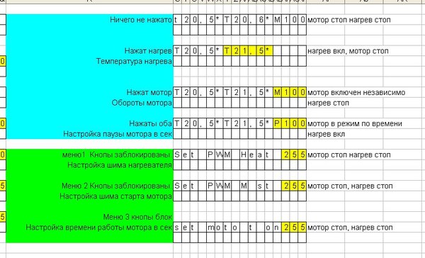 Итого. Имеется регулировка температуры, регулировка гистерезиса нагрева, регулировка оборотов компрессора (Интенсивность перемешивания). Для устойчивой работы компрессора на минимальных оборотах настроен программный "Разгон" На регулируемое время старта подается чуть больший шим, потом меньший.