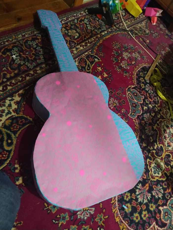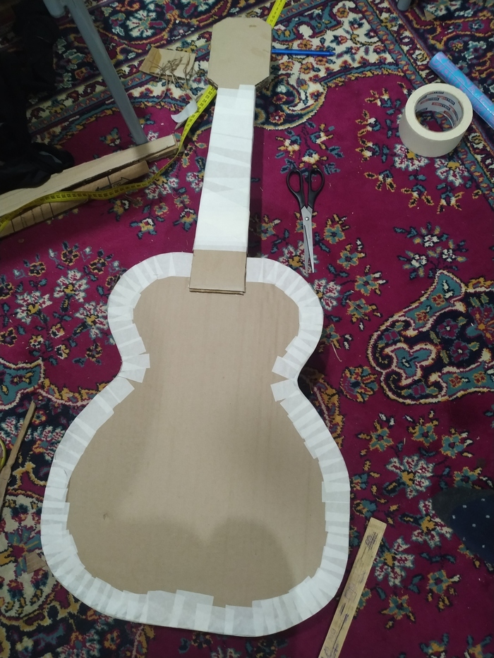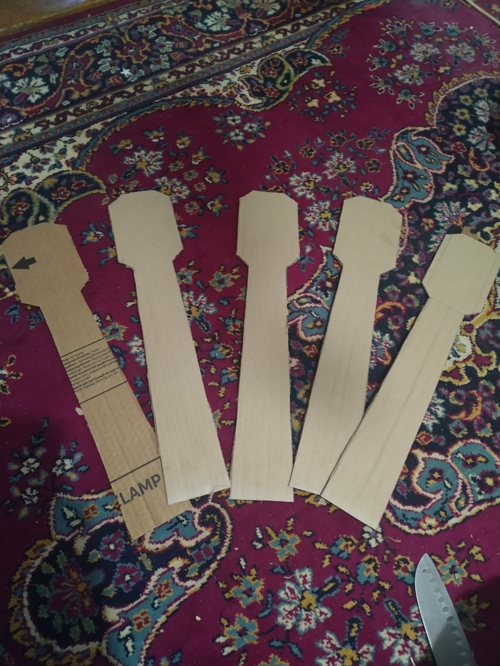 Далее склеила вместе все 5 деталей грифа: две целых, две коротких (обрезала длину, которая будет заходить на корпус), и далее 1 длинную.