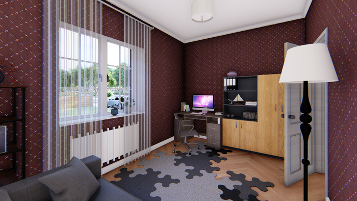 Здесь всего одна спальня, дом рассчитан на пребывание двух человек. В тоже время, если к вам приехали гости - их можно разместить в гостиной. Несущая стена обеспечивает хорошую звукоизоляцию.