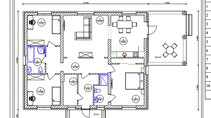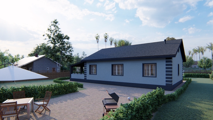 Мы предвусмотрели большую террасу, где можно проводить время с большой компанией на свежем воздухе. Есть место для большого обеденного стола.