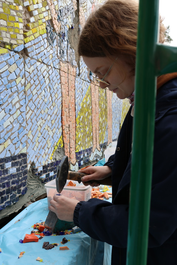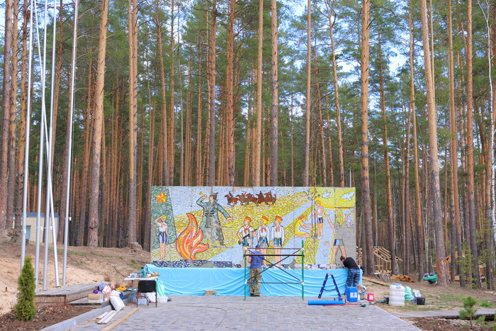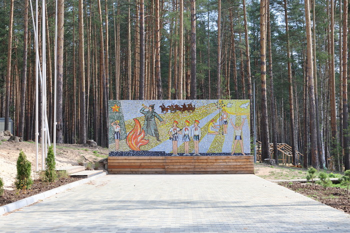 Примерно через месяц после замеров и взятия образцов смальты, мы привели ее в должный вид. Теперь она снова будет радовать гостей лагеря. Как вам итоговый вид?