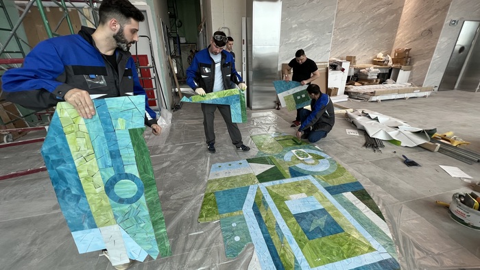 Откуда взялся такой срок? Так-то до нас этот заказ выполняла другая мастерская, но они затянули сроки и заказчик принял решение сменить исполнителей и обратился к нам. Делать мы начали всю мозаику с нуля.