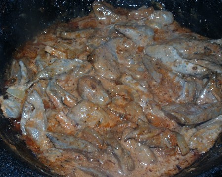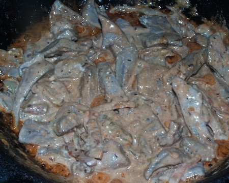 Все это еще несколько минут доходит на огне и в самом конце добавляется три столовых ложки сливок. Для меня было новостью, что их надо предварительно смешать с ложкой горячего бульона, дабы они не свернулись в кастрюле, но это, наверное, только для меня открытие.