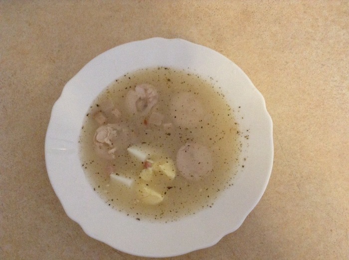 Рецепт и вековая мудрость польских хозяек рекомендовали нам влить в кастрюлю сначала лишь половину бутылки и попробовать, чтобы журек не оказался слишком кислым. Но мы не стали полагаться на рецепторы и если на бутылке и в рецепте написано 500 мл на 2 литра бульона, то так тому и быть! Слава Богу получилось самое то!
