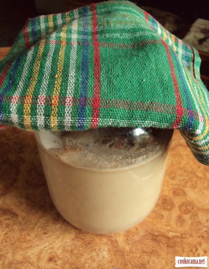 В стеклянной банке или в глиняном кувшине смешать все ингредиенты для закваски. Перемешать.