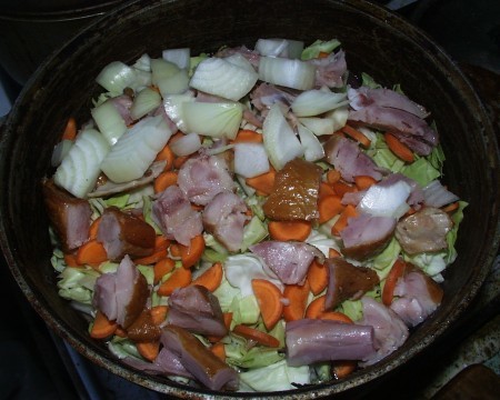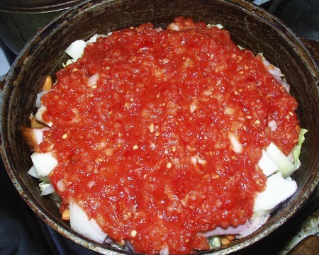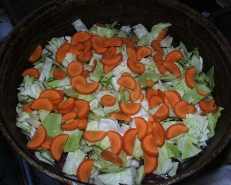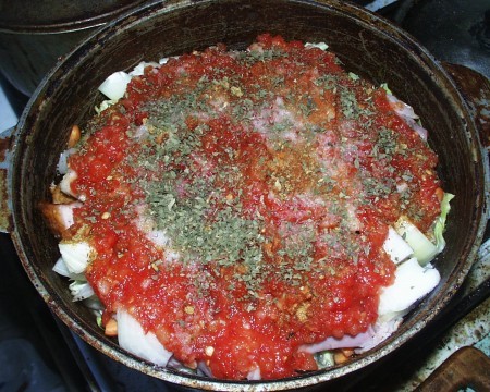 Накрыли все большим кусом фольги. И в разогретую духовку до 400 градусов по фаренгейту (200 по C).