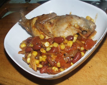 Есть ее полагается с клюквенным сладким желе и картофельным пюре на гарнир. Заедать тыквенным пирогом. Запивать можно кто во что горазд. И запивают это дело со смаком, надо сказать.