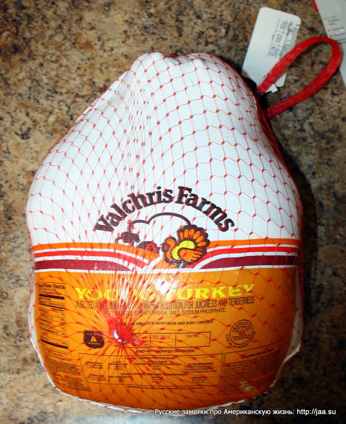 окупали мы замороженную индейку за три дня до праздника. Увидев птиц в холодильнике, я радостно схватила одну из них. Весила она оооочень много, ели вытащила. По магазину ее нес муж, я бы не осилила. Весит она как оказалось потом за 7 кг, плюс еще была дико замороженная. Стоила $17.3.