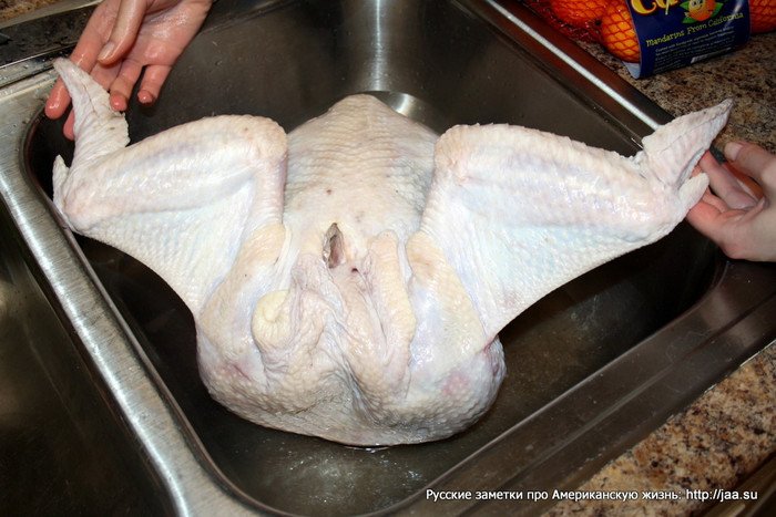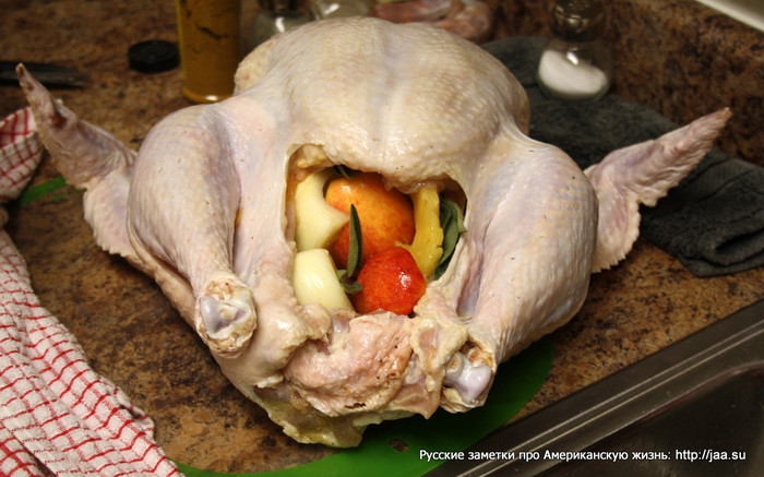 Индейку еле разместила в холодильнике. Есть мы ее будем, наверное, всю следующую неделю!