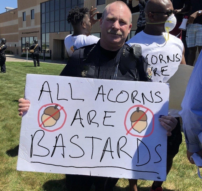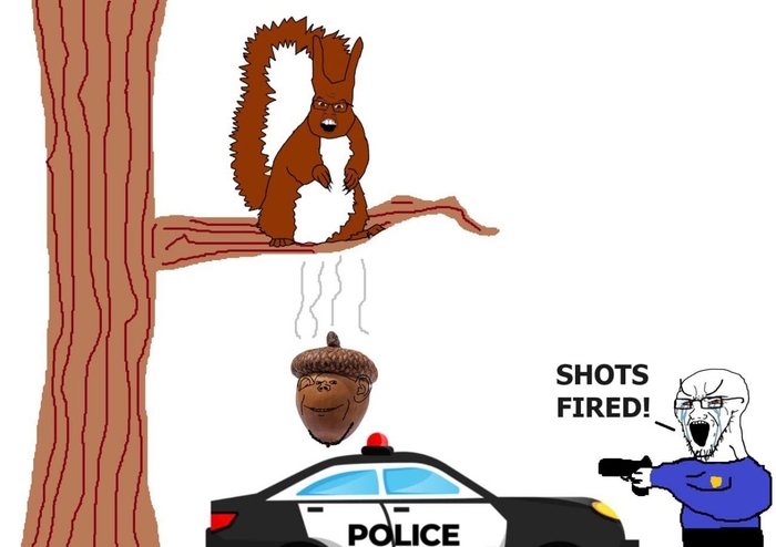 После того как жёлудь упал на крышу машины, действия развивались как боевике: полицейский сделал несколько кувырков и вместе с коллегой расстреляли автомобиль...в котором сидел задержанный в наручниках.