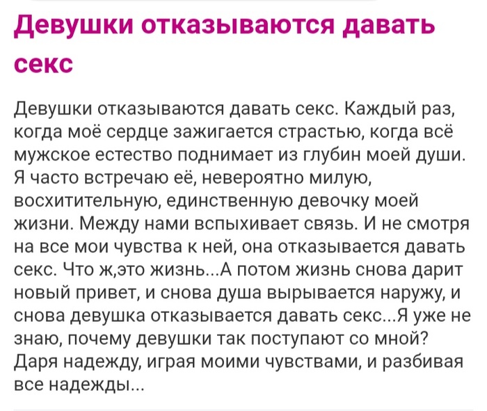 469 sestrenkaleto Исследователи Форумов М+Ж 6 лет назад *** *** **" *** *** *** *** *** *** *** *** Показать полностью 12 Форум Длиннопост Мужчины и женщины Исследователи форумов