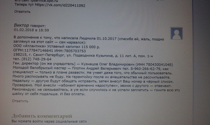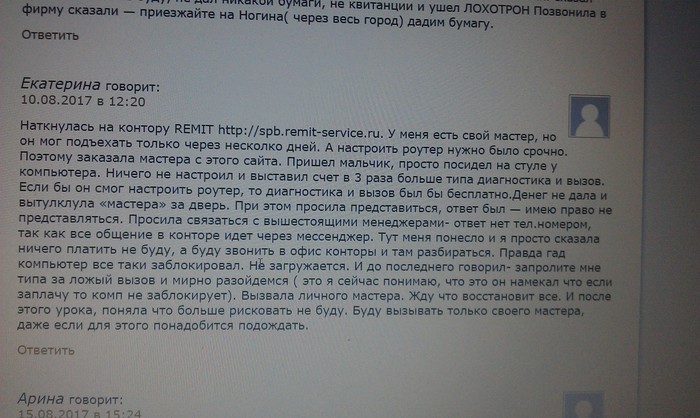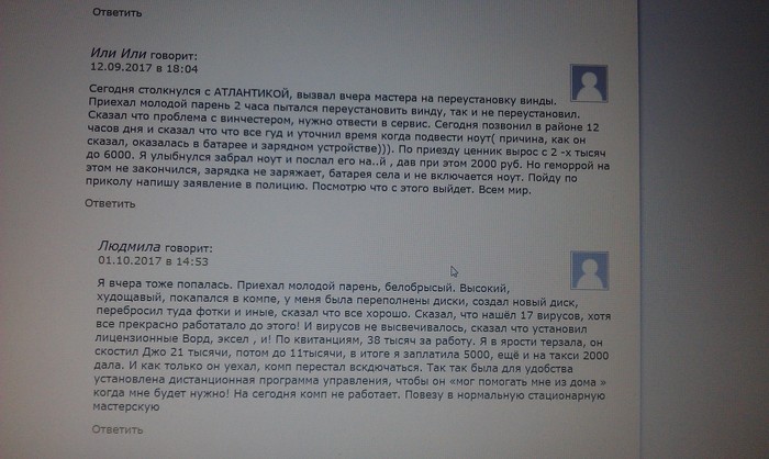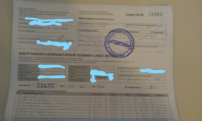 Так вот, 17.02.2018г. ничего не предвещало беды пока ОС на нашем скопленном стипендиями и презентами от родителей на НГ не решила обновиться. Результатом стал "черный экран" с курсором и отсутствие реакции ПК на нажатие клавиш. Так как самостоятельно мы поломку по озвученным выше причинам были не в силах, то девушка решила поискать мастера по ремонту ПК. Результатом поисков оказалась некая компания. После оставления заявки нам сразу же перезвонили и сказали, что "мастер" (как же некоторые уродуют это слово подложным смыслом) будет ну прям очень скоро. И действительно, скоро появился высокий, худощавый, сутулый, светловолосый юноша, лет 20-ти и тут же ринулся к своему "пациенту", аки молодая Флоренс Найтингейл. Недолго потыкавшись в ПК сказал, что все плохо, но не слишком, мол, "запускается, есть курсор, уже неплохо". Но на месте он ничего не может сделать, нужно везти в компанию, а завтра он позвонит и по звонку принесет исправный ПК. Внезапно, попросил предоплату, 1200 рублей- ну сказано- сделано. И не менее внезапно, когда последнюю сотню я отдал ему мелочью, сказал не без иронии: "Что, последнее забираю?" Мое особое (почти как у Человека-паука) чутье уже давно било тревогу, еще когда я увидел входившего к нам в комнату запинающегося в соплях мальчика, но я решил, что может стоит дать шанс (как человек которому самому из-за лет пациенты отказывают в курации и просят врача "постарше" или "поопытнее"- потому и даю молодым шанс, знаю каково это, быть молодым и что за бремя это в профессии).