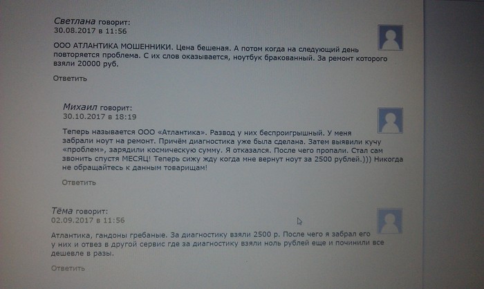 Кстати, предварительно я удалил Team Viewer (что-то я таки могу) (видимо, поэтому и могу написать этот пост). Пообщавшись с юристом и программистом (мой дядя же программист! как я мог забыть?! ну все, это уже тянет на звание "лох года", которого я не получу, потому что лох. Шутка. Получу.) мне тихо сказали, чтобы я просто забыл об этом, все очень трудно будет оспаривать и что-то доказать, что так работает огромное множество таких же компаний. Мы также написали крайне негативный отзыв на сайте компании (кстати, там все отзывы только положительные и исключительно без дат) который они естественно даже не опубликовали. А ведь парень еще обещал что с нами свяжется какой-то отдел по контролю качества или вроде того, а вместо всей обратной связи получили только игнор да разговор из серии "этожениправильно". Да, пожалуй, мой поступок тоже был не из высоких. Но я постарался написать без прикрас, не выгораживая себя.