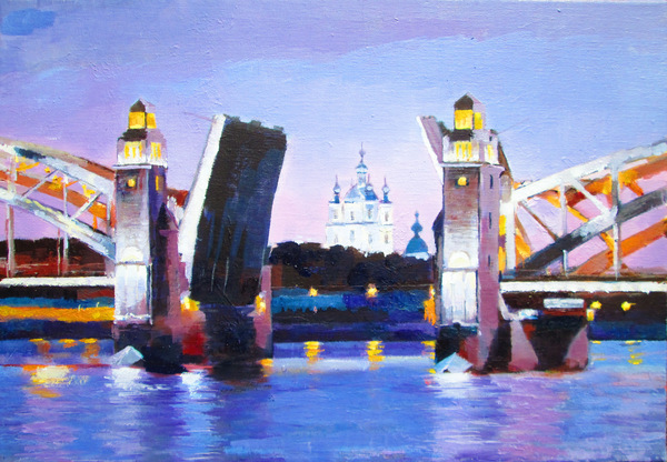 8 sfhwz В сиреневых тонах 9 лет назад живопись маслом на холсте [моё] Живопись Картина маслом Петровский мост Санкт-Петербург Арт
