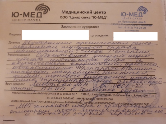 Сходил к рентгенологу в понедельник, она сказала, что лучше записаться в другую клинику или в НИИ слуха. Отложил 3 000 руб. от приходов пикабушников до зарплаты. В среднем МРТ в моем случае стоит 4000-7000 руб. Запишусь в НИИ слуха.