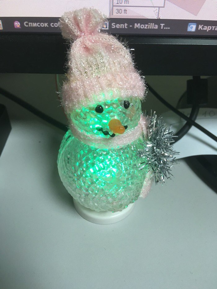 А еще в коробочке я нашел прикольный usb-светильник в виде снеговика, который сразу занял почетное место на моем рабочем столе