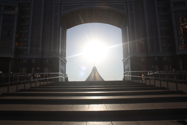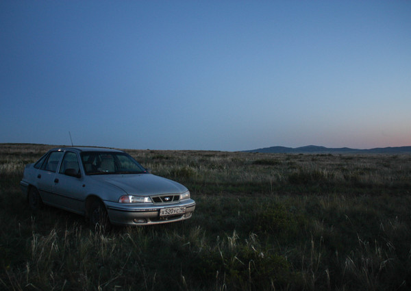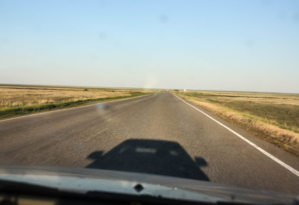 Где-то через 250 км наконец-то появилась синенькая вывеска КазМунай. Потратив половину оставшейся казахской налички (5000 тнг) мы заправились до полного бака и поехали дальше. Впереди была эстакада с подъемом и знаком 50. Так как я ехала и так довольно медленно (мы никуда особо не торопились и чаще всего я ехала -10 км от установленного ограничения), то на горке начала терять скорость. Перегазовала до 60 с копейками, дала по тормозам и далее 50. Превысила ограничение буквально на 30 секунд. Ну и в конце этой эстакады конечно же стоит будка с камерами и машину тут же останавливают. Мы были наслышаны о странностях казахской дорожной инспекции, поэтому сразу же сильно напряглись.