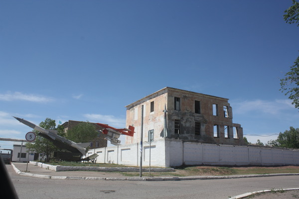 Попрощавшись с хозяевами, мы двинули дальше. Следующей точкой нашего маршрута был город Приозерск. На одном из форумов Стас прочитал, что этот город полностью заброшен, а на его территории некогда располагались военные полигоны РФ. На деле оказалось, что город вполне себе населен аж 13 тысячами человек, но, к сожалению, постепенно умирает. Многие здания действительно заброшены и разрушаются, большая часть военных объектов выведена из эксплуатации, какую-то часть до сих пор арендует Россия. Люди довольно печальные. Здесь мы надеялись найти обменник, но единственный банк был закрыт на выходной. Оказалось, деньги здесь успешно меняют продавщицы продуктовых ларьков, смело устанавливая собственный курс. Так в одном магазинчике нам предложили поменять рубли по курсу 4,5 тенге, а в соседнем - по 5.