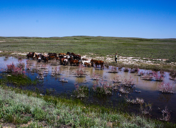 Ночевать мы остались прямо посреди маков. Тут произошла забавная история. Рядом паслось стадо коров, которые начали подходить поближе. Стас стал раскладывать палатку, а я завопила, что коровы нас затопчут, мне с ними страшно и давай чуть-чуть отъедем подальше. Так как он по совместительству музыкант-мультиинструменталист, с нами всю дорогу катался набор всевозможных этно-инструментов. "Сейчас я их отгоню, не бойся" - сказал он мне и достал из машины диджериду. Это деревянный духовой инструмент австралийских аборигенов. Труба звучит очень круто, но ей можно издавать и звуки, напоминающие последний стон умирающего мамонта, например. Вот чем-то таким Стас и занялся, чтобы распугать коров. Но им, видимо, понравилось, и к нам начало с любопытством подтягиваться второе стадо. "Без паники," - сказал Стас и сменил диджу на шаманский бубен. И о чудо, внезапно коровы пустились в натуральное бегство и через пару минут скрылись за горизонтом. Теперь мы знаем всё о музыкальных пристрастиях этих парнокопытных.