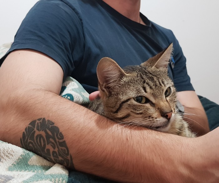 И вот на днях открывается дверь и заходит кошка, очень похожая на ту самую, первую что у меня была. Как к себе домой, напрямую к миске, пару раз мяукнула и спать завалилась. На минуточку, прошло почти полтора года, за которые я успел побывать в командировке, жениться, сменить две машины. Естественно я не проверил. Начали сверять по старым фотографиям особенные черты: пятна, полоски, цвет подушечек и лап, даже пятно под хвостом в форме сердечка, все совпало. И самое интересное, собака ни разу не гавкнула, хотя котов погонять любит. Теперь дома две девочки. Одна молодая и активная, другая уставшая и взрослая. Надеюсь найдут общий язык.