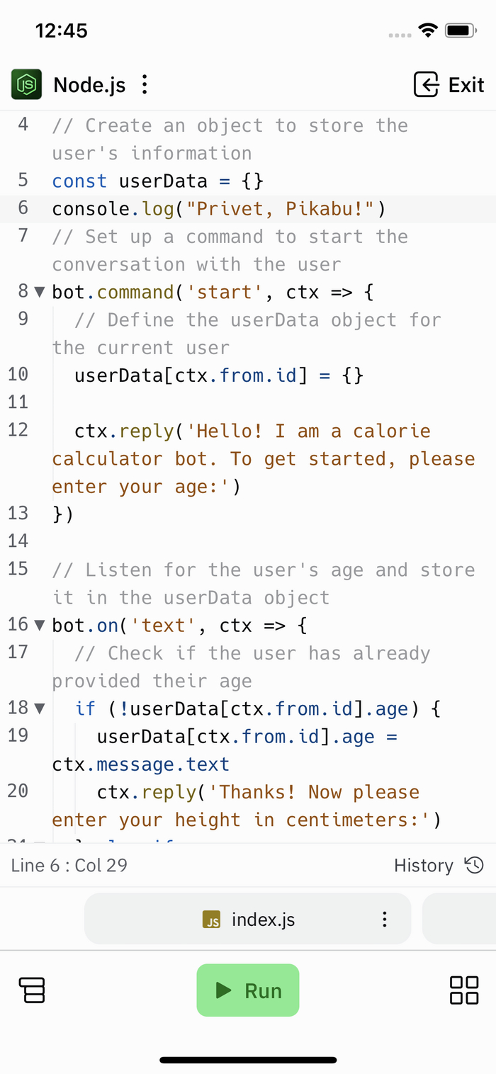 Здесь нам поможет ещё одном приложение, которое вышло не так давно: Replit. Оно превращает ваш телефон в полноценную рабочую станцию с IDE, терминалом и возможностью запускать приложения! Ресурсы, конечно, ограничены, но нам много и не надо!