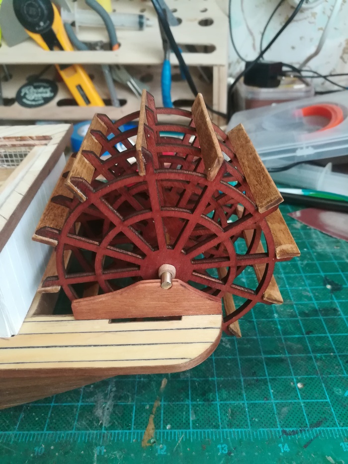 На заказ вырезали лазером гребные колеса,сам бы я не смог бы вырезать так ровно.Ну,а так как они не давали мне покоя,то я их склеил