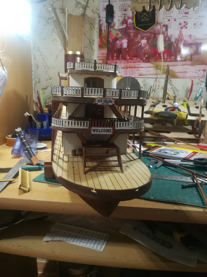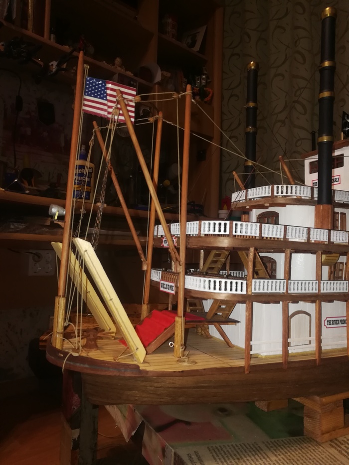 Захотелось мне сделать колесный пароход,Том Сойера перечитал заново.Нашел в сети инструкцию -чертеж от mantua, распечатал,и приступил.Наклеил на фанеру 3мм,вырезал все ручным лобзиком