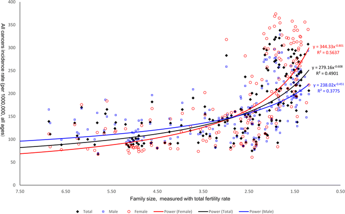 Исследователи выяснили, как часто рак возникает у людей, имеющих разное количество детей. «Внезапно» оказалось, что эволюция не изменила себе. Там, где женщины в семьях рожали в среднем по 7,5 ребенка, вероятность заболеть раком за всю жизнь была в 2,79 раза ниже, чем в семьях, где женщины рожали в среднем менее полутора детей.