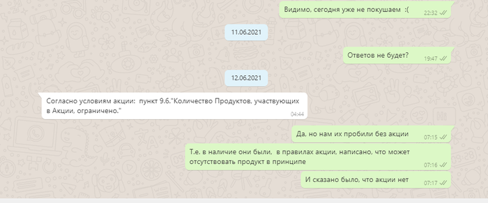 Но хочу заметить, что "Продукт закончился / Акция закончилась", это абсолютно не тоже самое, что "Ни о какой акции не знаю".