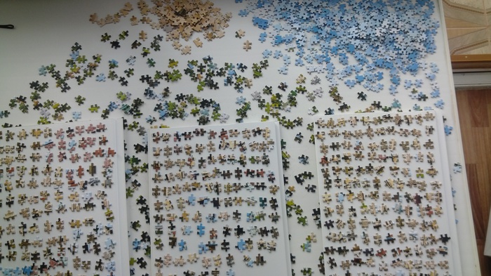 Осталось самое нелюбимое. Один цвет и много кусочков. Собираю методом подбора. Нудно. Без желания. Самый долгий этап.