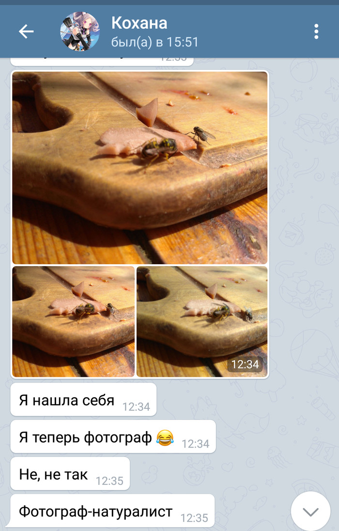 Жена уехала к детям на дачу, заняться было нечем, начала фотографировать местных обитателей. Мне было сброшено более 100 фото ос, пчел, муравьев, кузнечиков и т.д с припиской - посмотри как красиво, а ты так не умеешь :) Для ответа пришлось оторваться от лиги МК11.