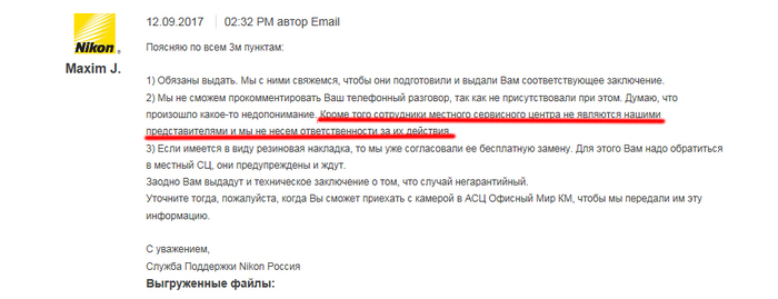 - Мы сожалеем но решение не наше, а компании Никон, мы отправляли им фотографию затвора и они дали такое заключение. Будете ремонтировать за деньги?