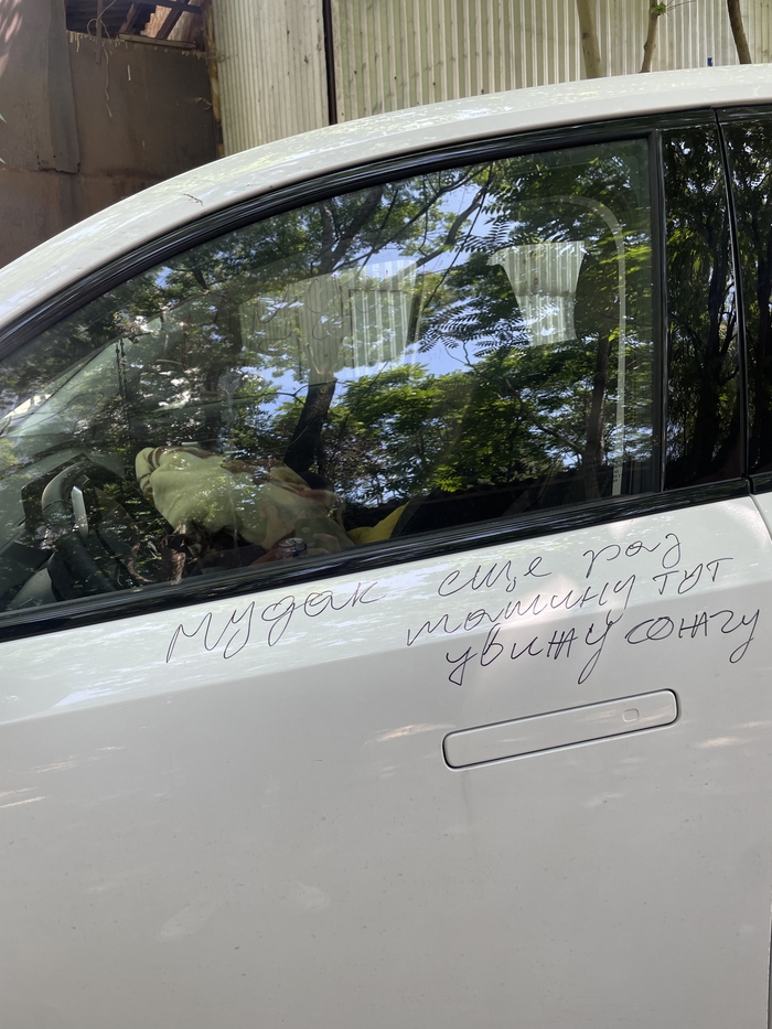 Ночью или рано утром, какой-то мудак кинул машину прямо на проезде. Дальше за ним еще большая территория (тупик) с парковкой и около 15 мастерских. Ни заехать, ни выехать. Номера не оставил. Номера московские, на зеркале четки с полумесяцем и звездой🤔